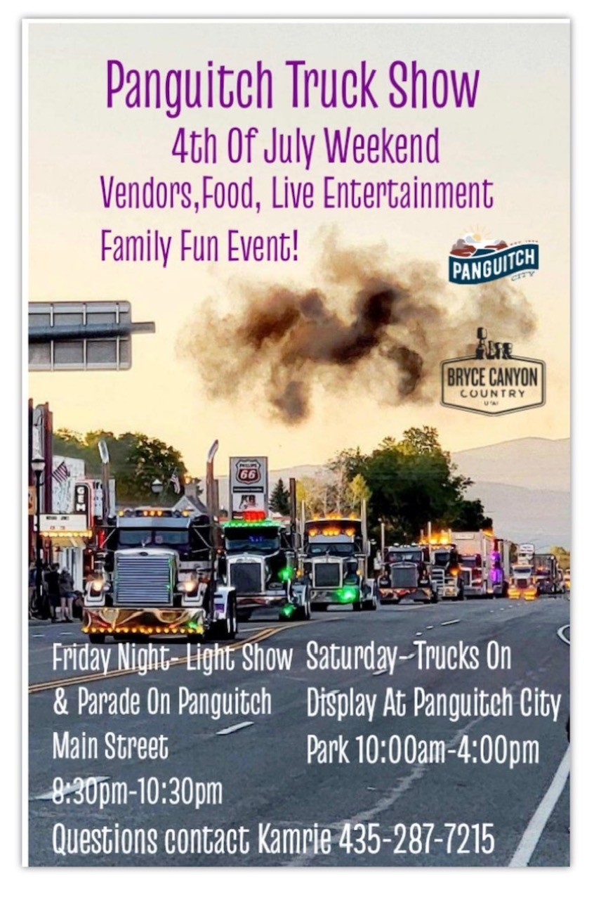 - 10:00 a.m. – 4:00 p.m. Truck Show with vendors at the City Park parking lot at 775 N. Main Street in Panguitch
